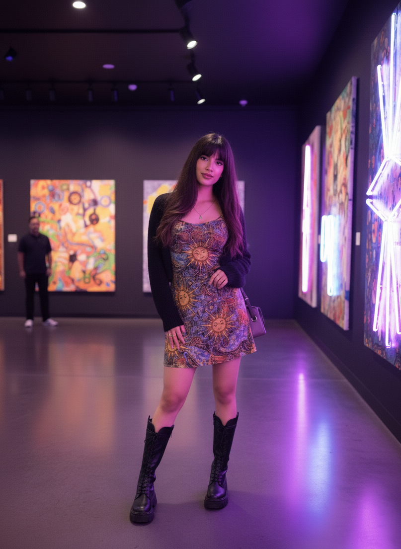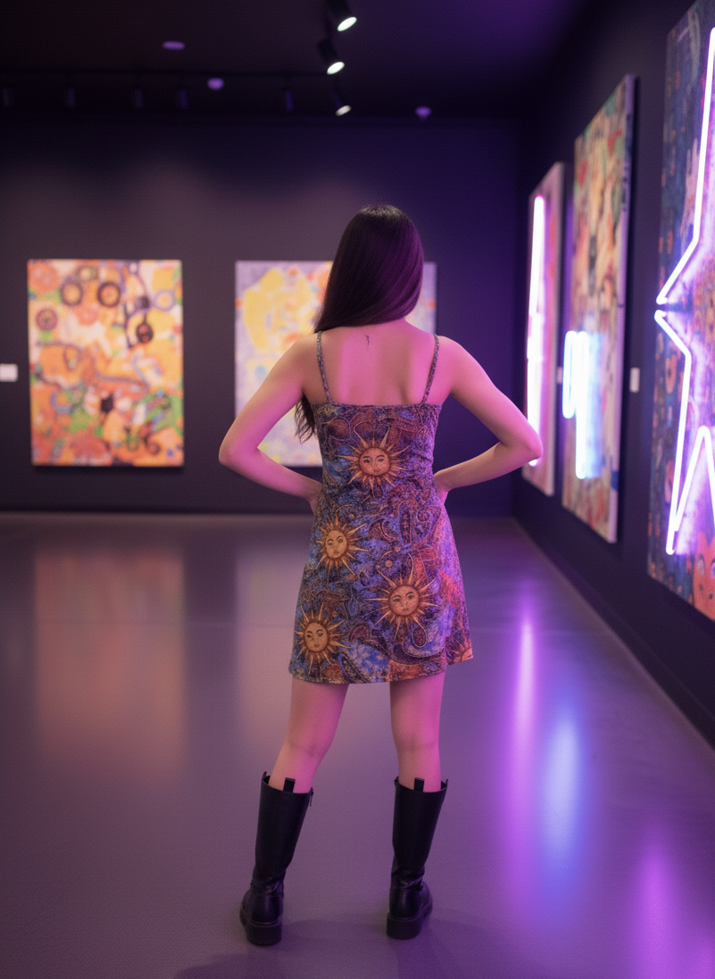 Vestido de tirantes vintage retro con estampado de cara de sol para mujer